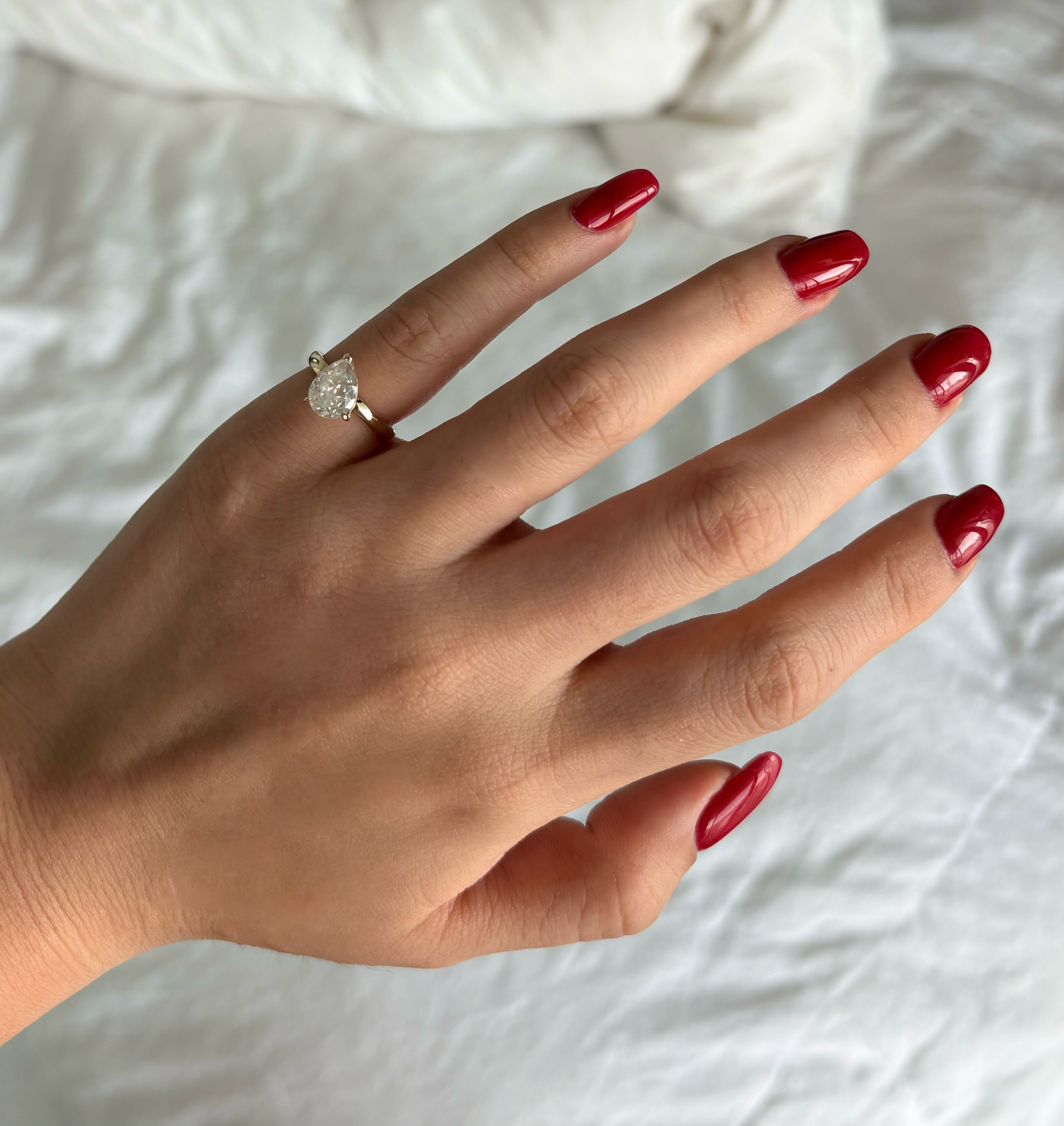 This East-to-West pinky ring is sculpted in gold around a 1.50 carat IGI-certified lab-grown pear-shaped diamond, VVS1 clarity, selected for its balance of brilliance and clarity.